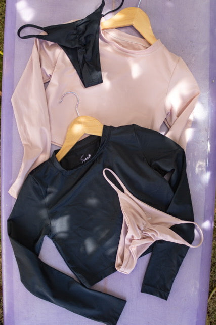 Our Ruched Bottom in Black or Muse combines style and sustainability with its premium Italian fabric. Featuring a flattering ruched design, this bottom offers moderate coverage and a chic silhouette. The recycled polyamide and elastane blend provides a comfortable stretch and shape retention, making it both a fashionable and functional choice for your beachwear collection.